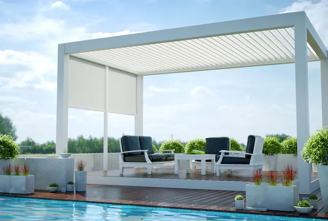 Our pergolas offer a stylish outdoor extension, combining shade and structure with a watertight roof design, rotating louvers, and a range of optional equipment for enhanced functionality.