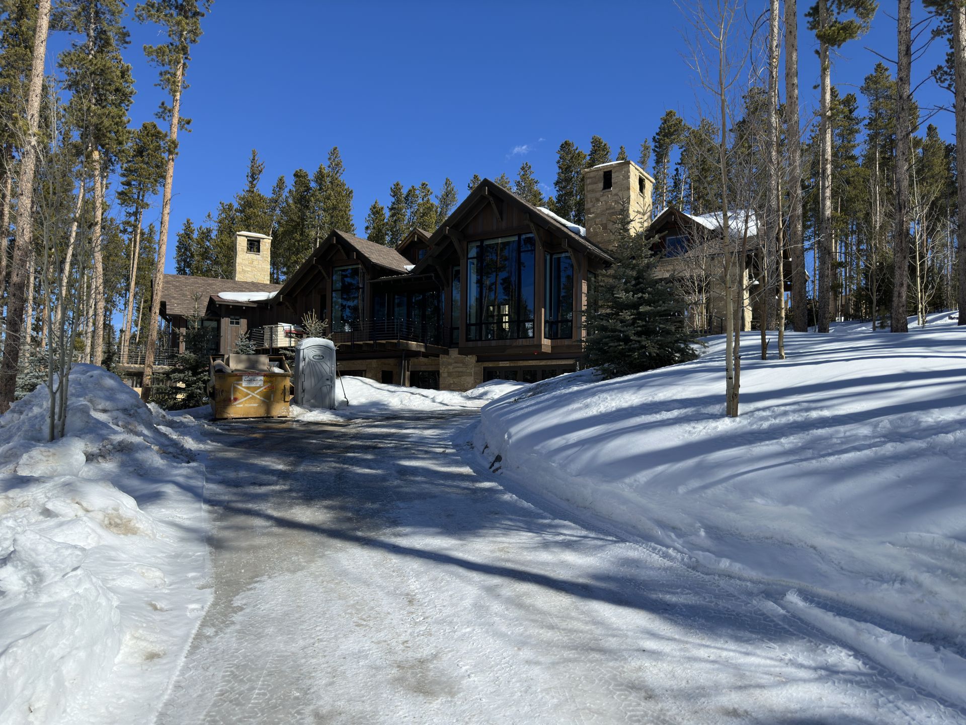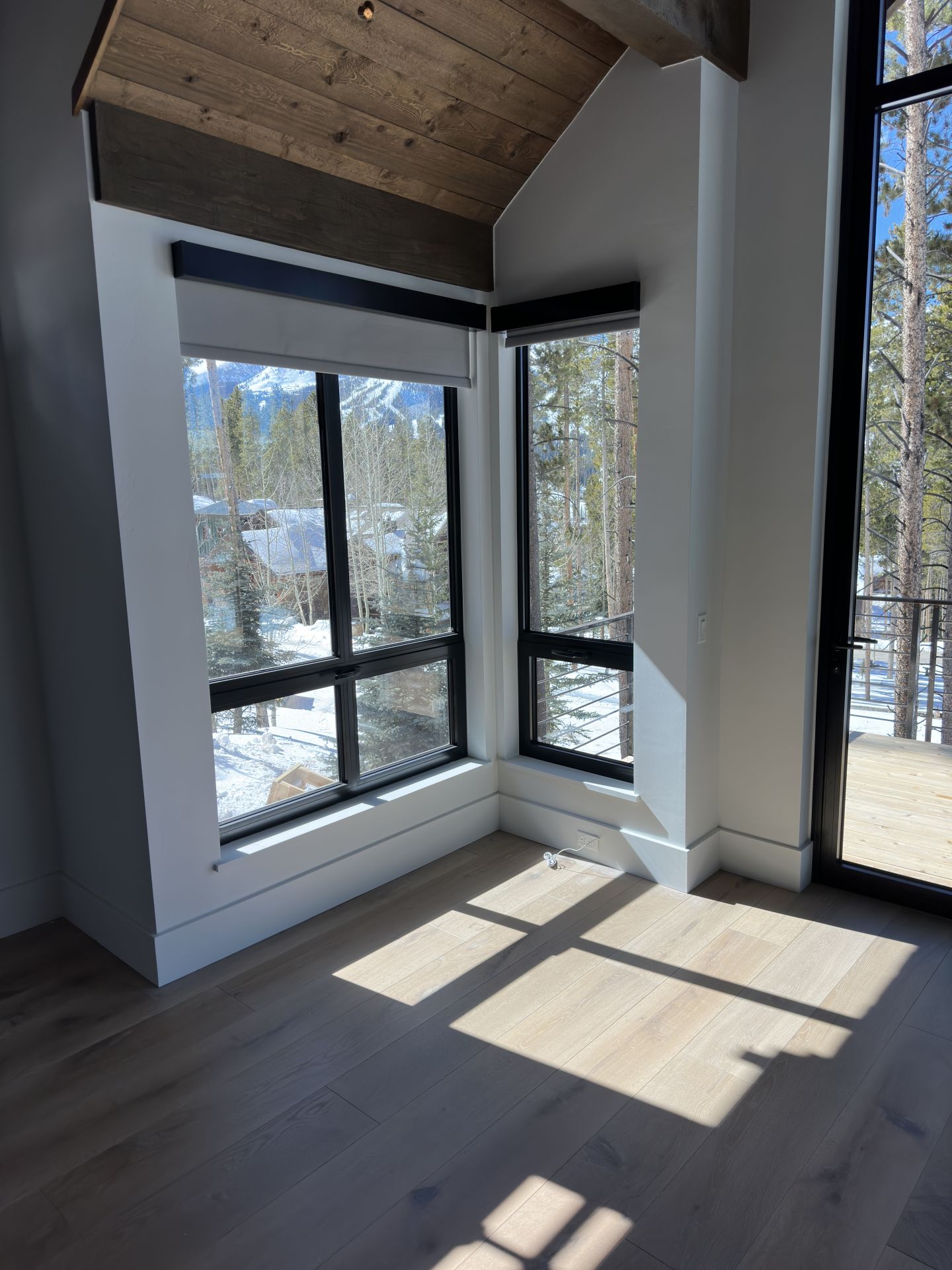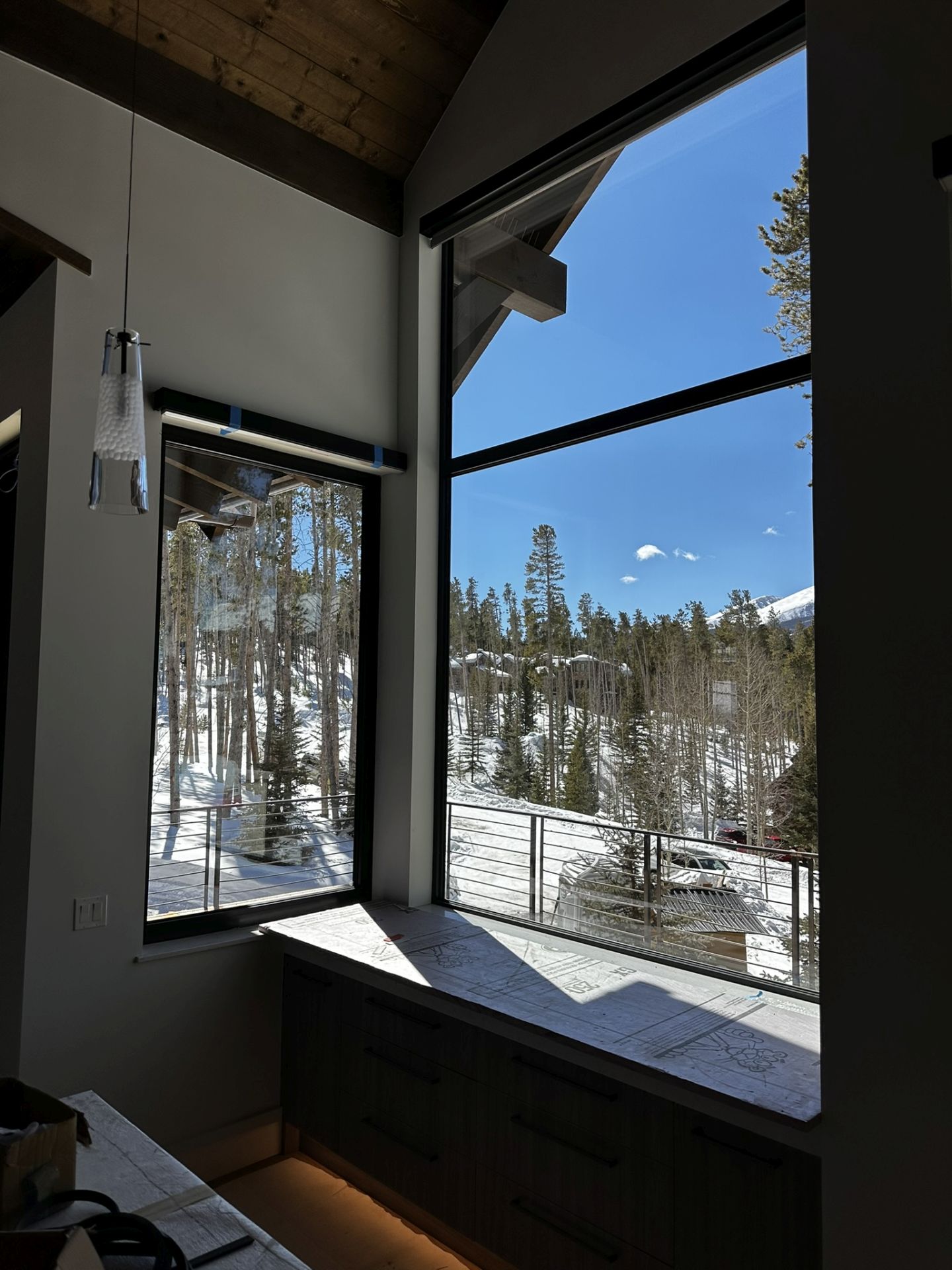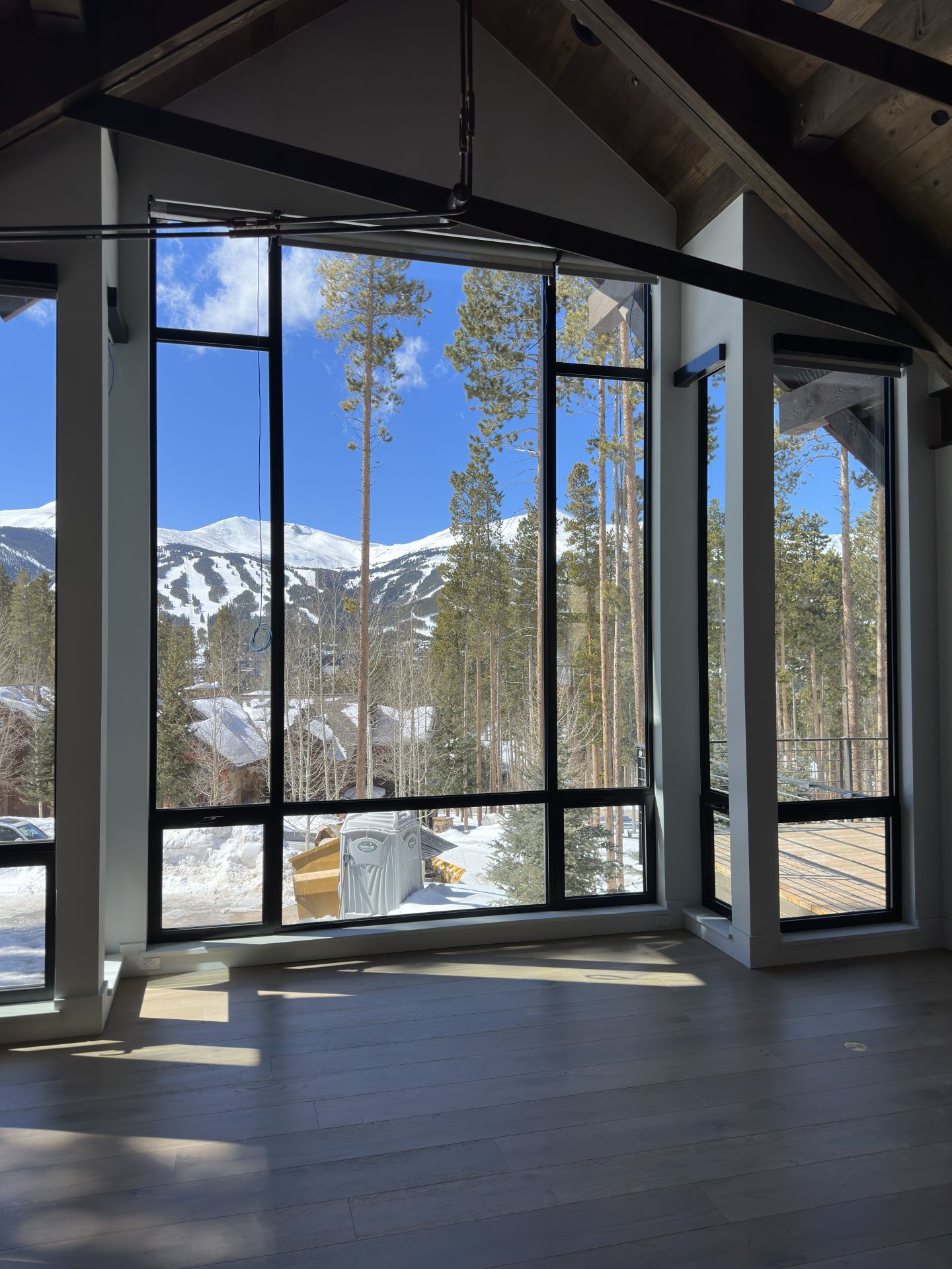 A showcase of a home in the mountains of Colorado that features oversized windows and doors, designed with strength and resilience to withstand high wind loads.
