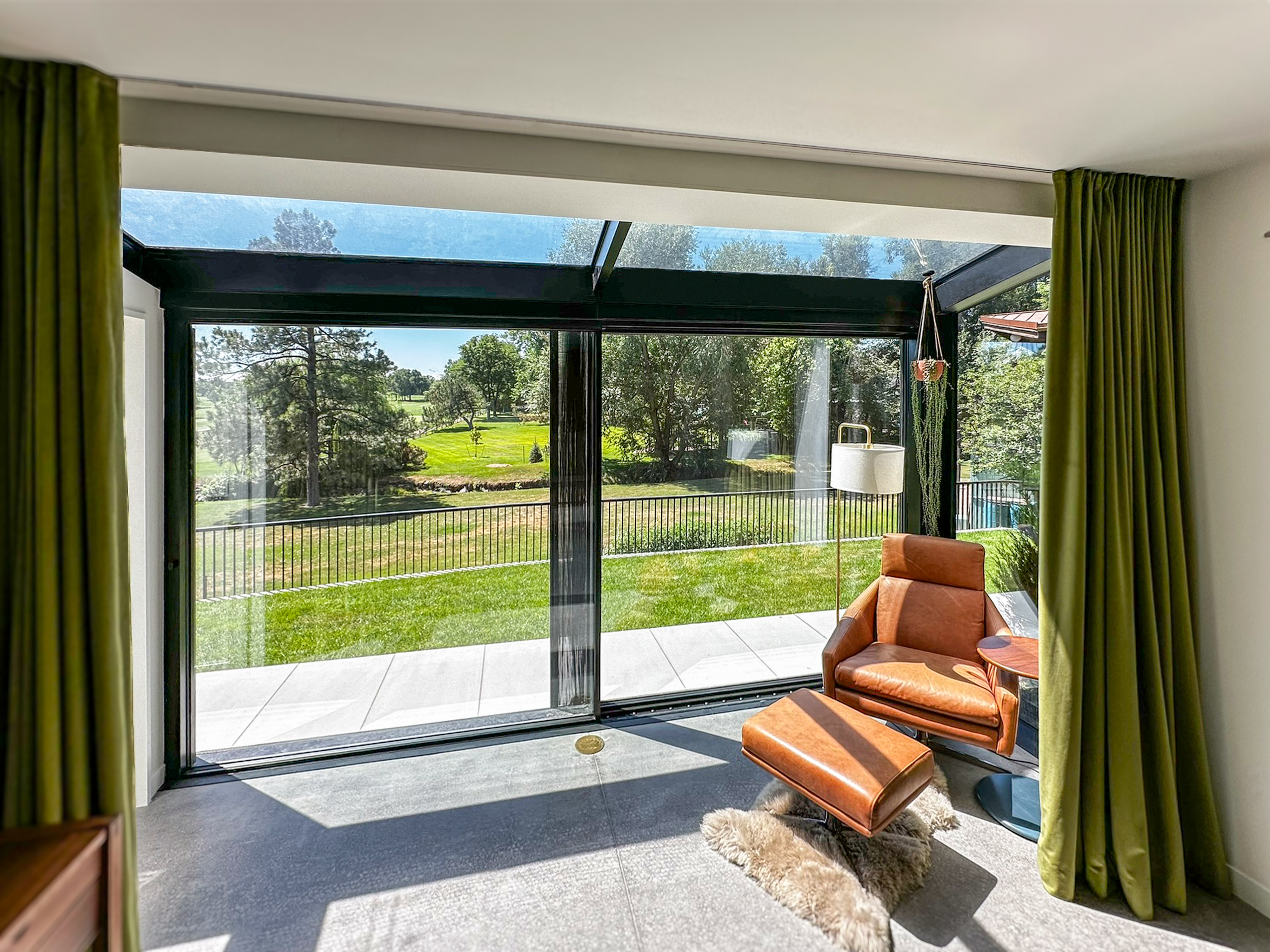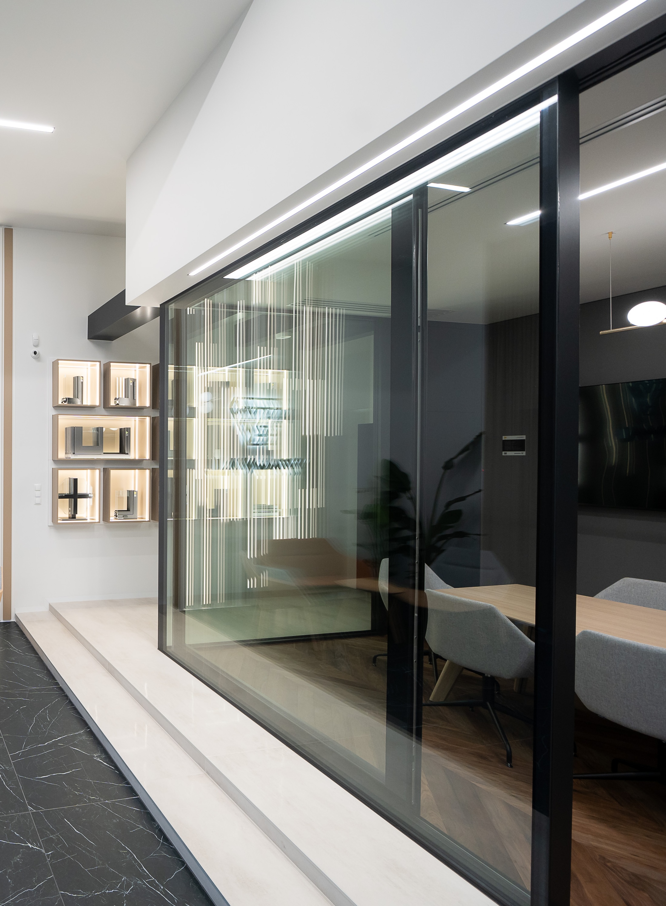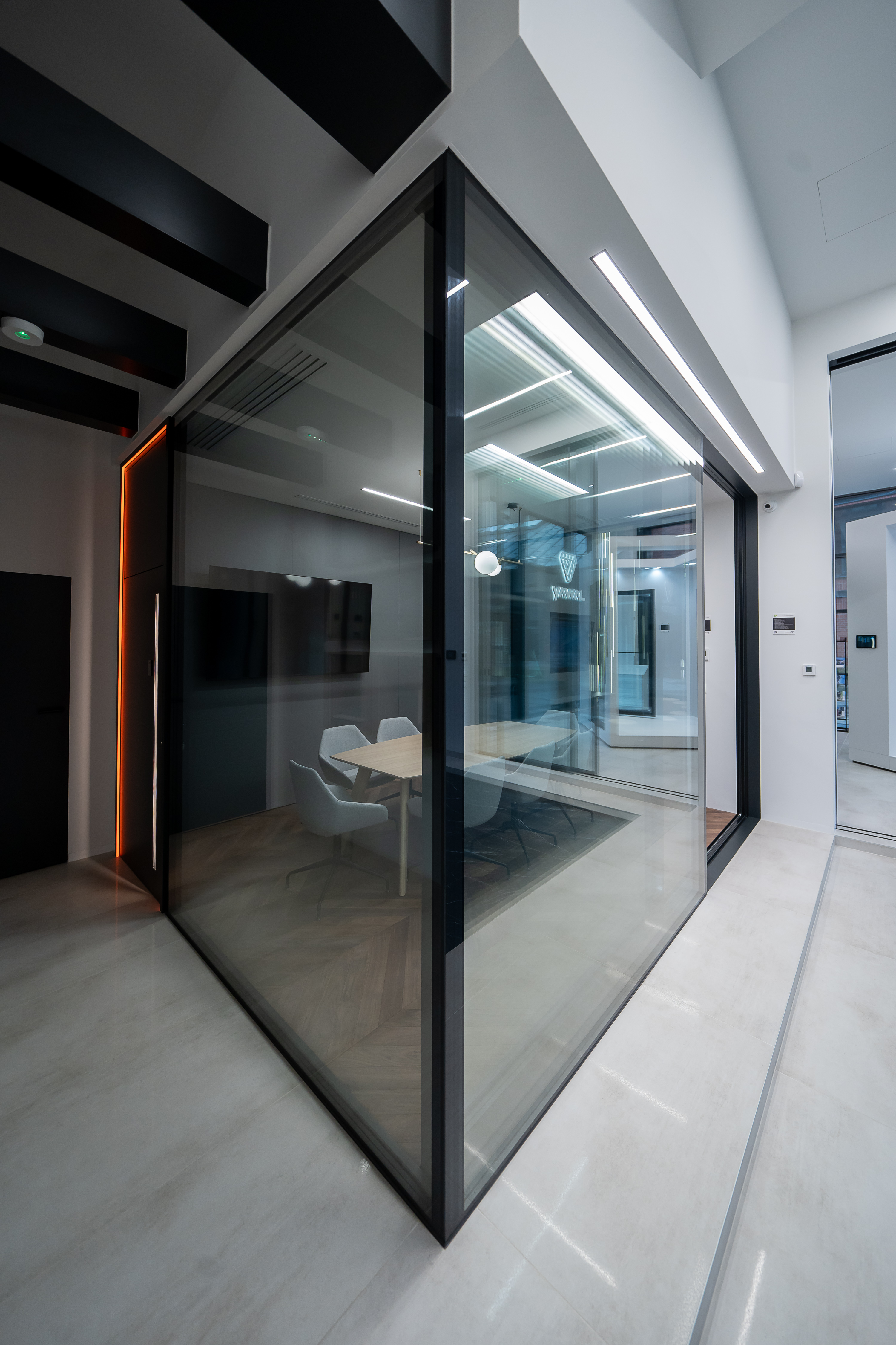 - Option for full glass corners at 90 degrees, no visible profile slider, blending with wall structure. Hardware invisible from outside and "full glass house" visible effect.