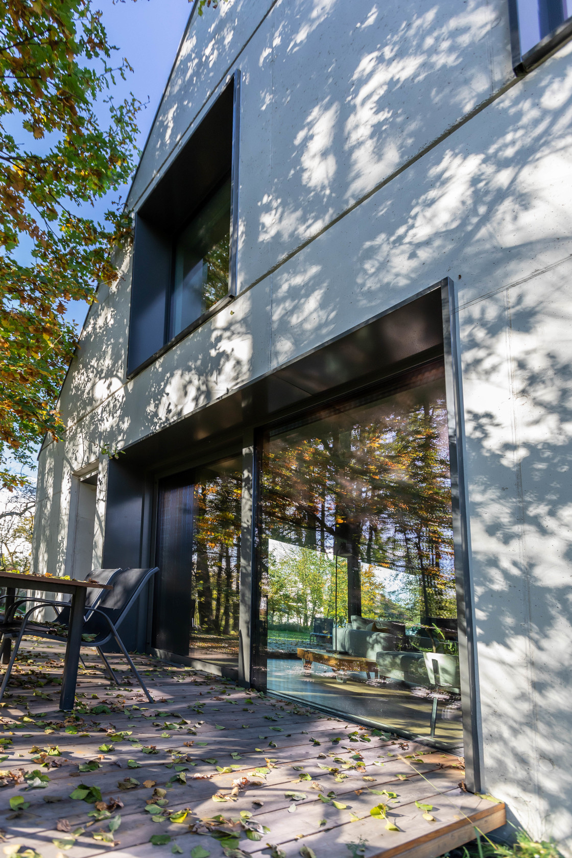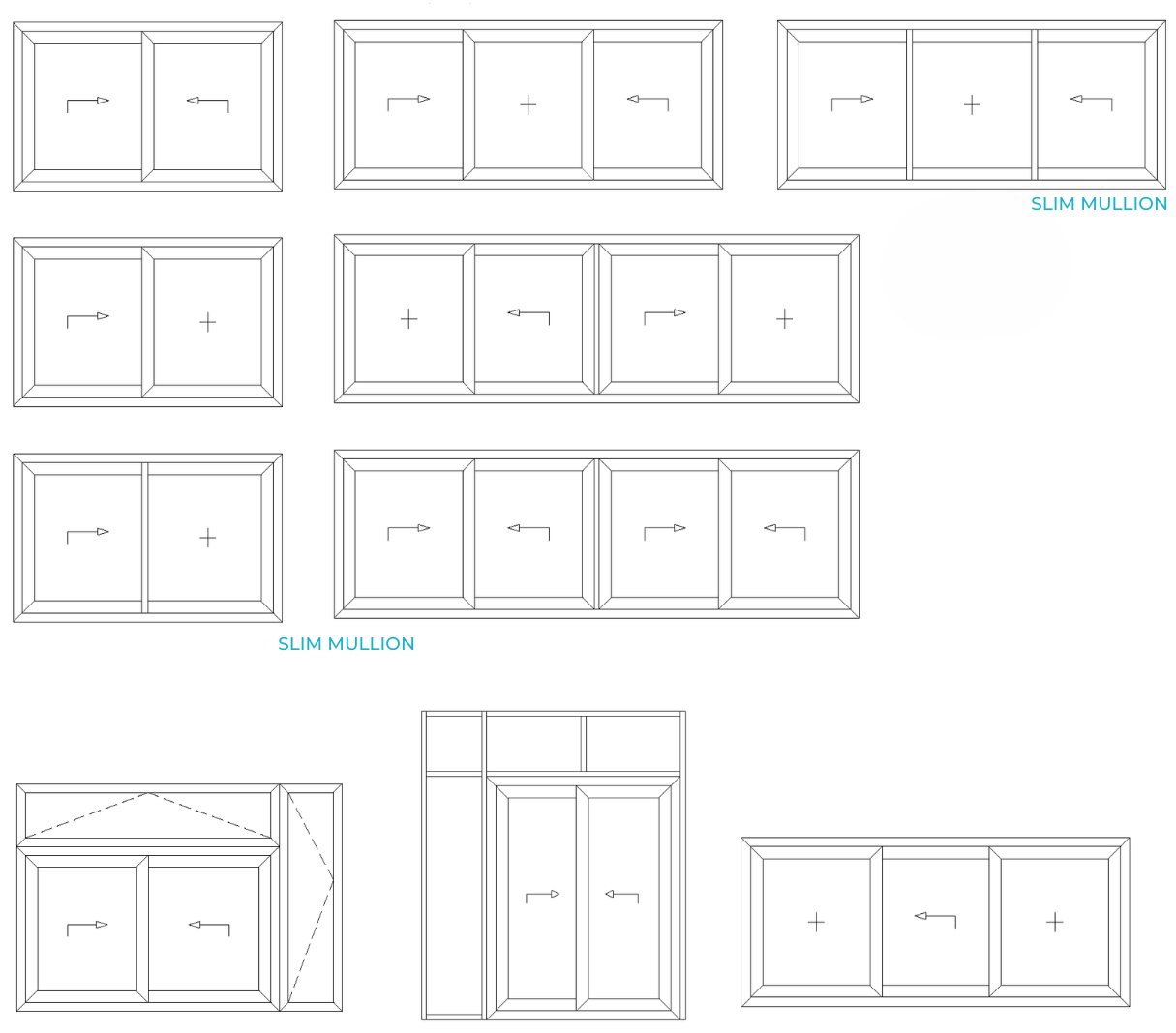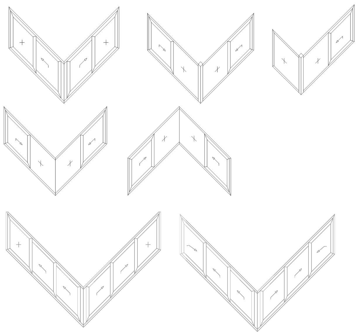 - Option for full glass corners at 90 degrees, no visible profile slider, blending with wall structure. Hardware invisible from outside and "full glass house" visible effect.