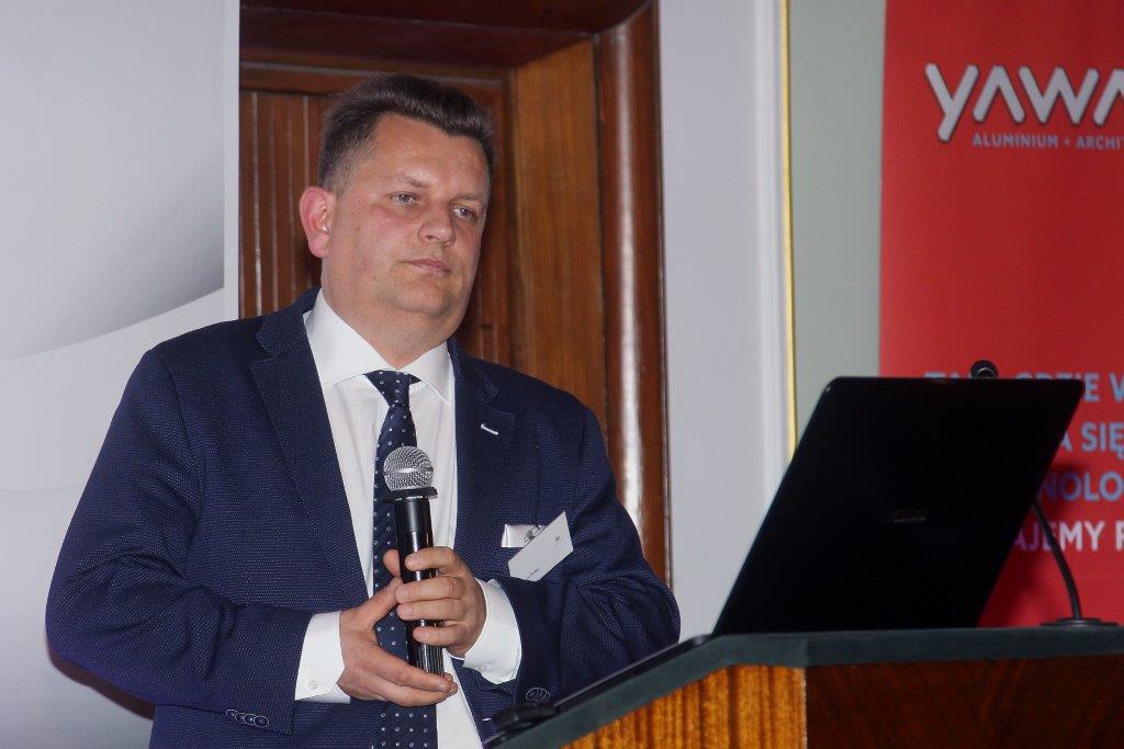 Speech of the Vice-Minister was followed by the presentation of representatives of Yawal S.A.: Wojciech Wolnicki (Commercial Director) and Wojciech Kulej (Technical Director), titled: “World Trends in Development of Aluminium Joinery”. The presentation was welcomed with large interests of their listeners. They pointed out the increasing demand on the market for passive, photovoltaic systems, narrow profiles, large dimensions, intelligent solutions, and more and more common designing of individual structures customized to the needs of the investment.