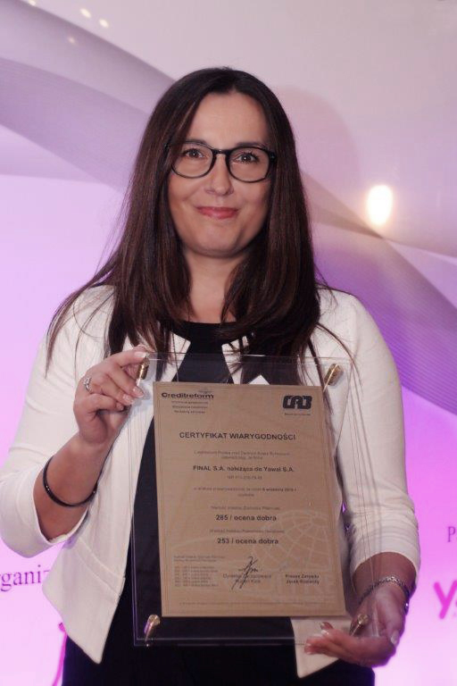 After the coffee break, the meeting organizers started the programme called “Certyfikat Wiarygodności” [Credibility Certificate]. The document is granted by the recognized analytical institution Creditreform based on tests it carries out which prove payment credibility and credit line of the company. First winners of the programme are the following companies: Final S.A., Gerda, and Oknoplast. The certificate for the company from Yawal Group was collected by the President of the Group, Magdalena Jagiełło. Next stage of the meeting was to grant awards for the Woodwork Market Leaders 2016, which was divided into several categories within two groups: manufacturers and suppliers.